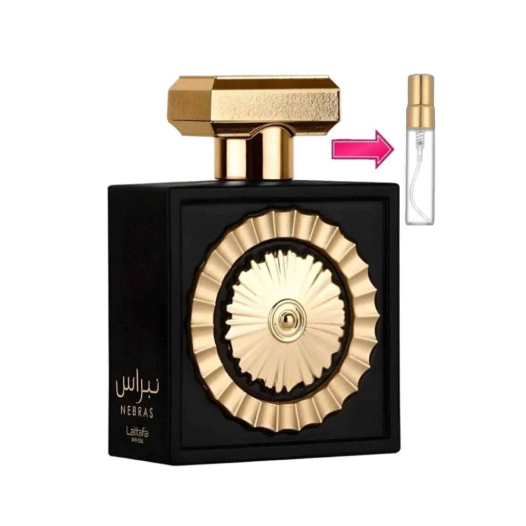Nebras é um perfume unissex importado Lattafa âmbar baunilha.
